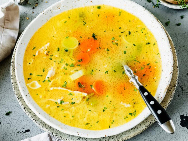 Gesunde Hühnersuppe mit Gemüse und Wahlweise Einlage (Nudeln, Reis)