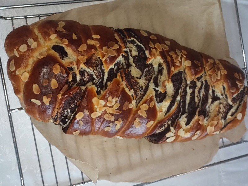 Rozpływająca się w ustach a zarazem chrupiąca chałka makowa z posypką migdałową ( na zdjęciu użyta gotowa masa makowa)