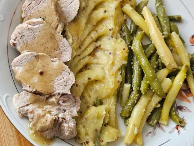 Polędwiczki wieprzowe w sosie miodowym i purée ziemniaczane