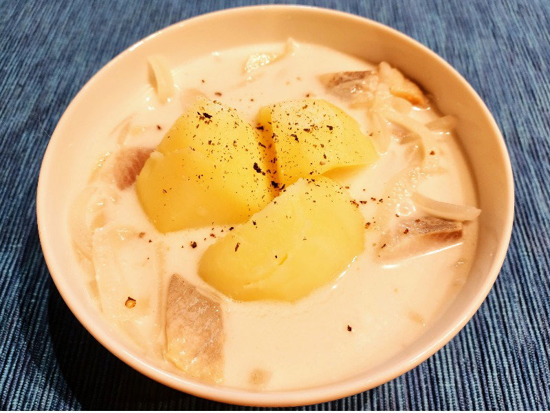 Postna zupa śledziowa na zimno z gorącymi ziemniakami.