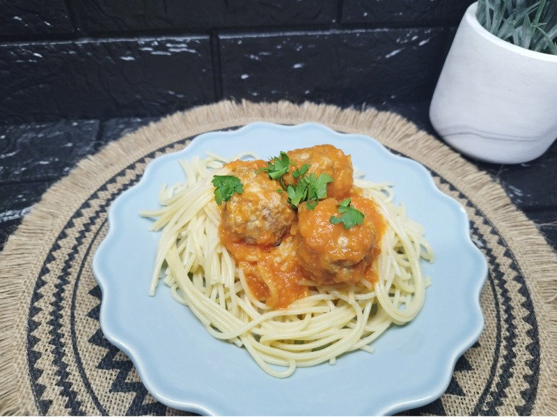 Almôndegas de carne com esparguete – Cozinhar em pirâmide.